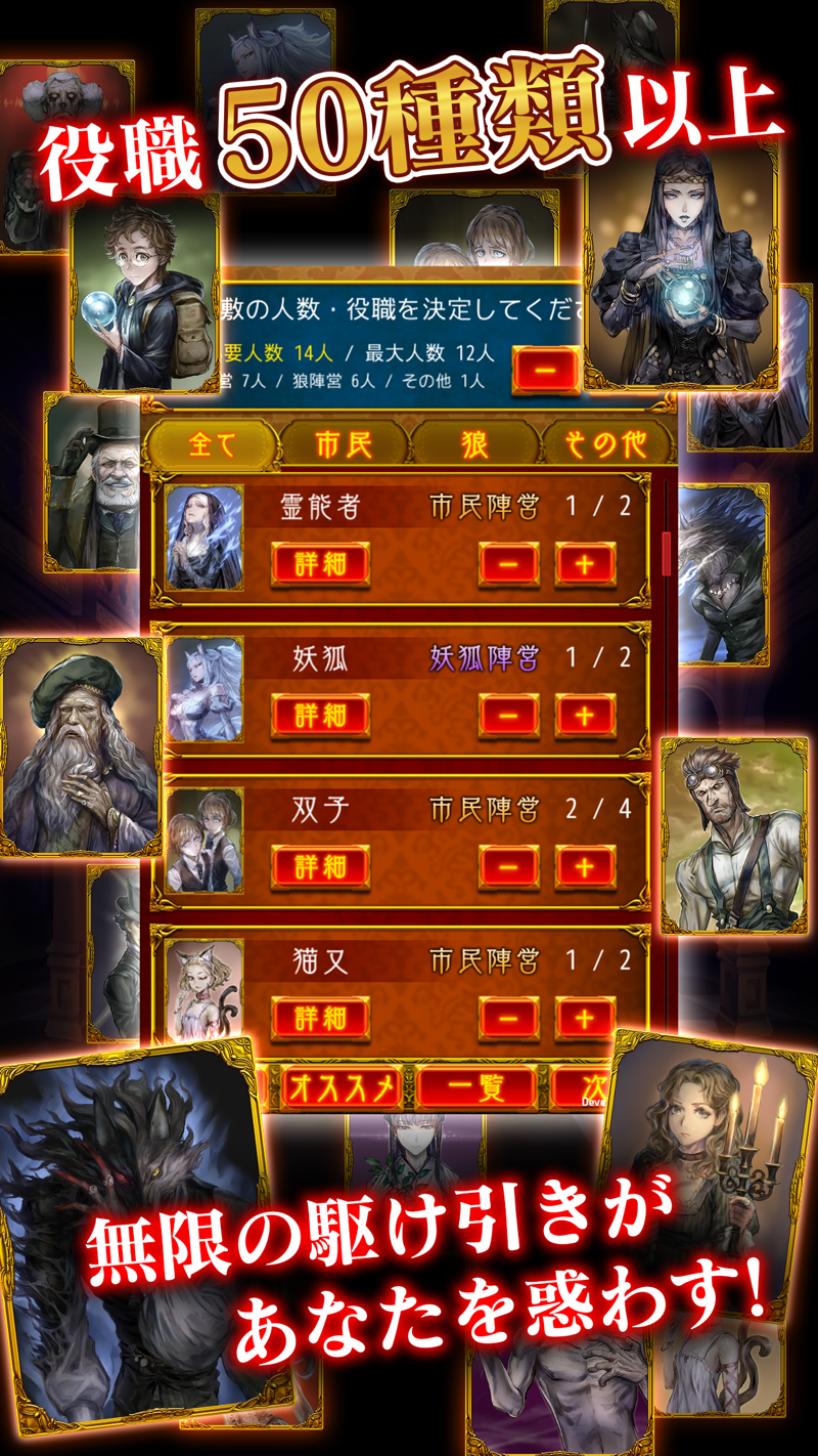 人狼ゲームのレビュー・感想・評価 27全28件 8% 22%人狼ゲーム (13) 人狼ゲーム 監督 熊坂出 みたいムービー 90 みたログ 438 261 点 / 評価338件 作品トップ 解説・あらすじJun 24, 21 · 「人狼デスマッチ」は妖怪をモチーフにしたオンラインボイスチャット人狼ゲーム!白鷺境にてみんなの挑戦を待っている! 6,9,12人の村に加えて、オリジナルモード「サバイバル村」も登場!好きなキャラクターに修行をさせて宝物を集める「新放置システム」実装!9体の個性派